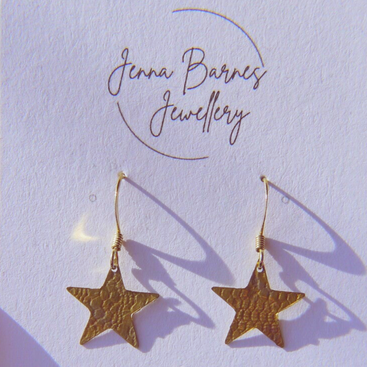 These brass earrings have been textured using lace in the rolling mill. They are on 24ct gold plated earwires.